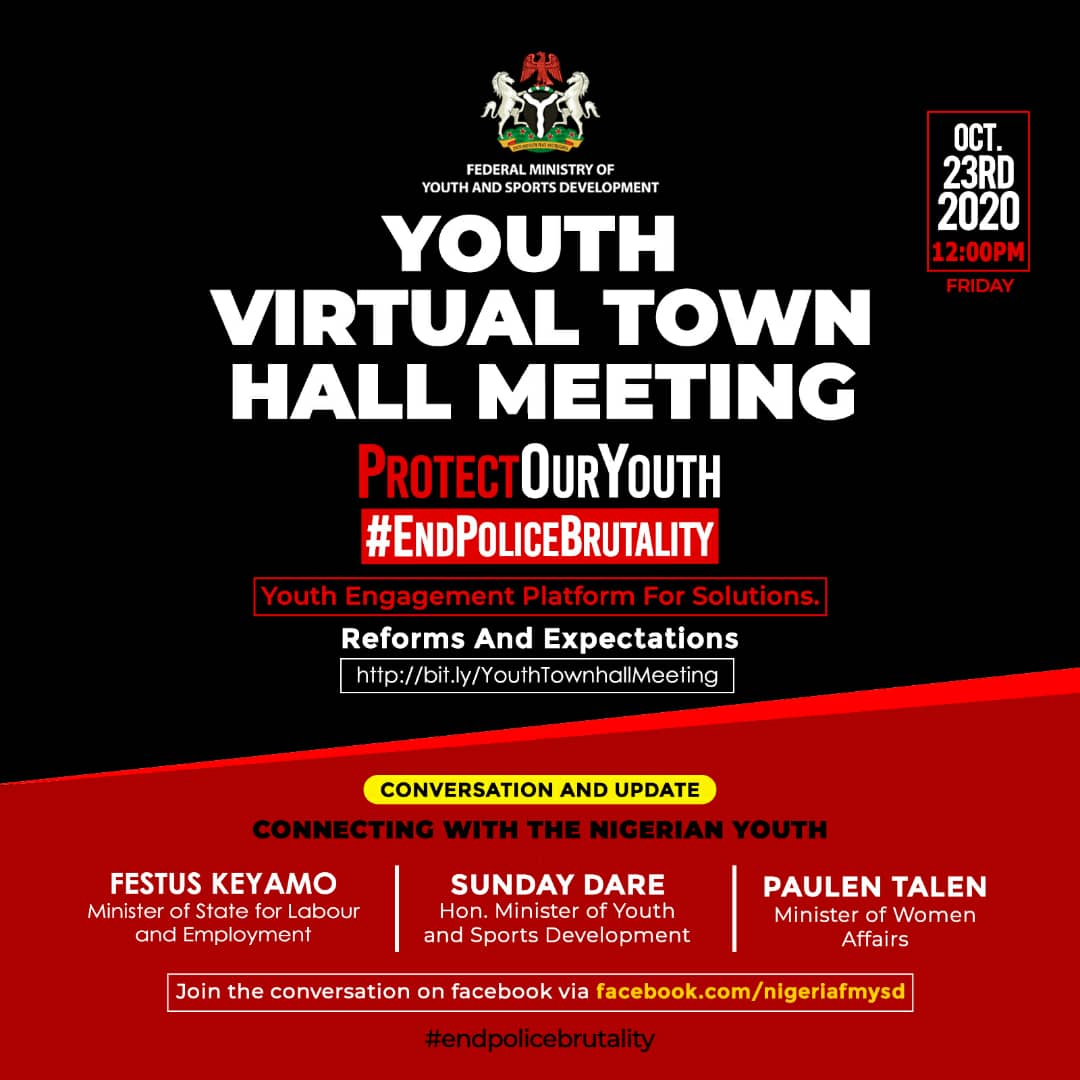 Speaking during the second Virtual town hall meeting held on Friday October 23rd which had about 11,500 youth participating Via zoom and Facebook/ YouTube organized by the Ministry, contributors commended the steps taken to address the demands of the youth from the EndSars campaign.