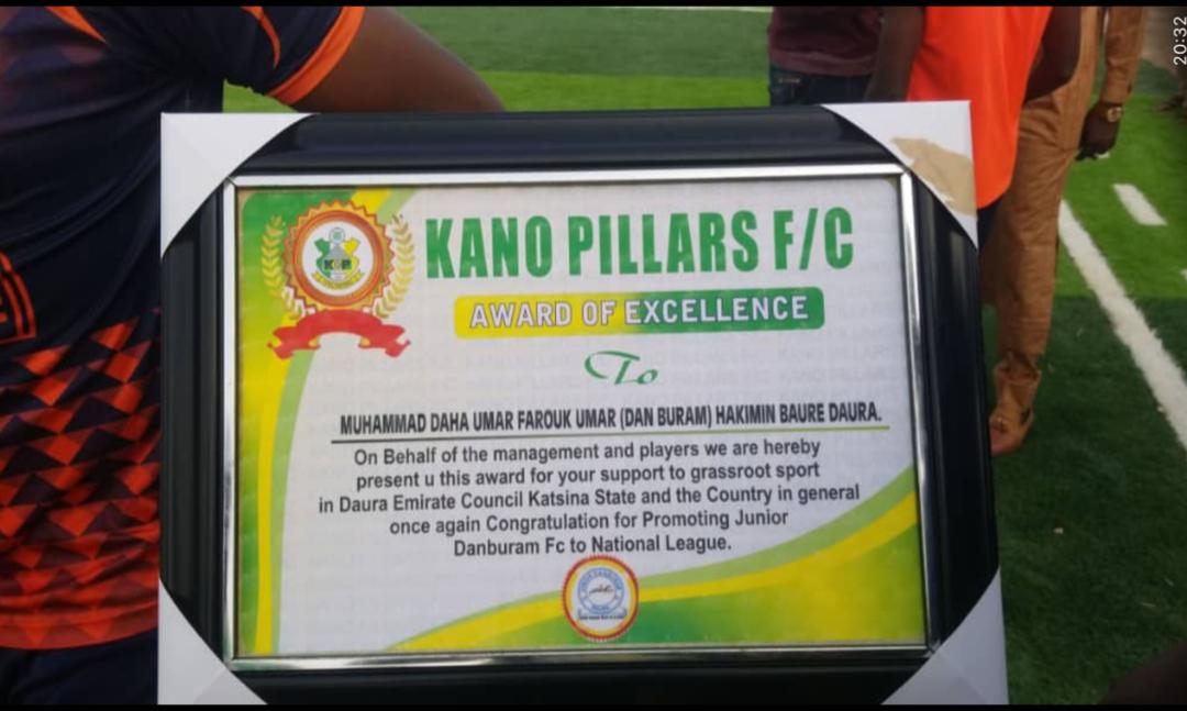 Chairman of Danburam Junior FC, Alhaji Muhammad Daha Umar Faruk (Danburam Daura) has been honoured by Kano Pillars for his contributions to sports.