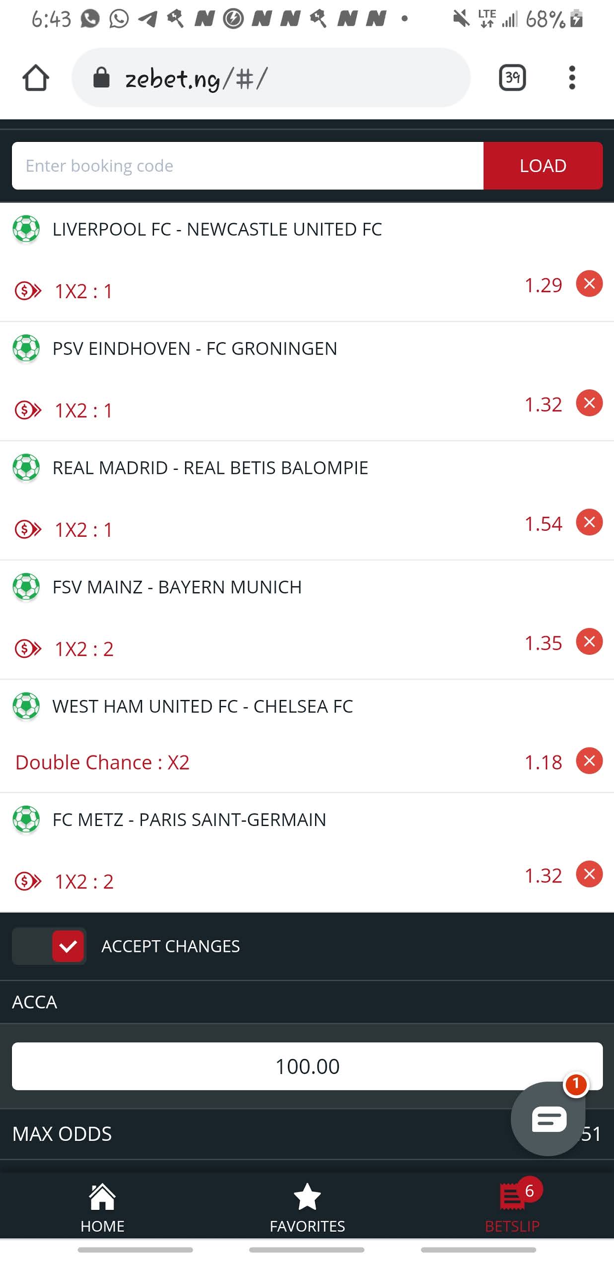 5 Odds Of Straight Win Odds ACCA on ZEbet